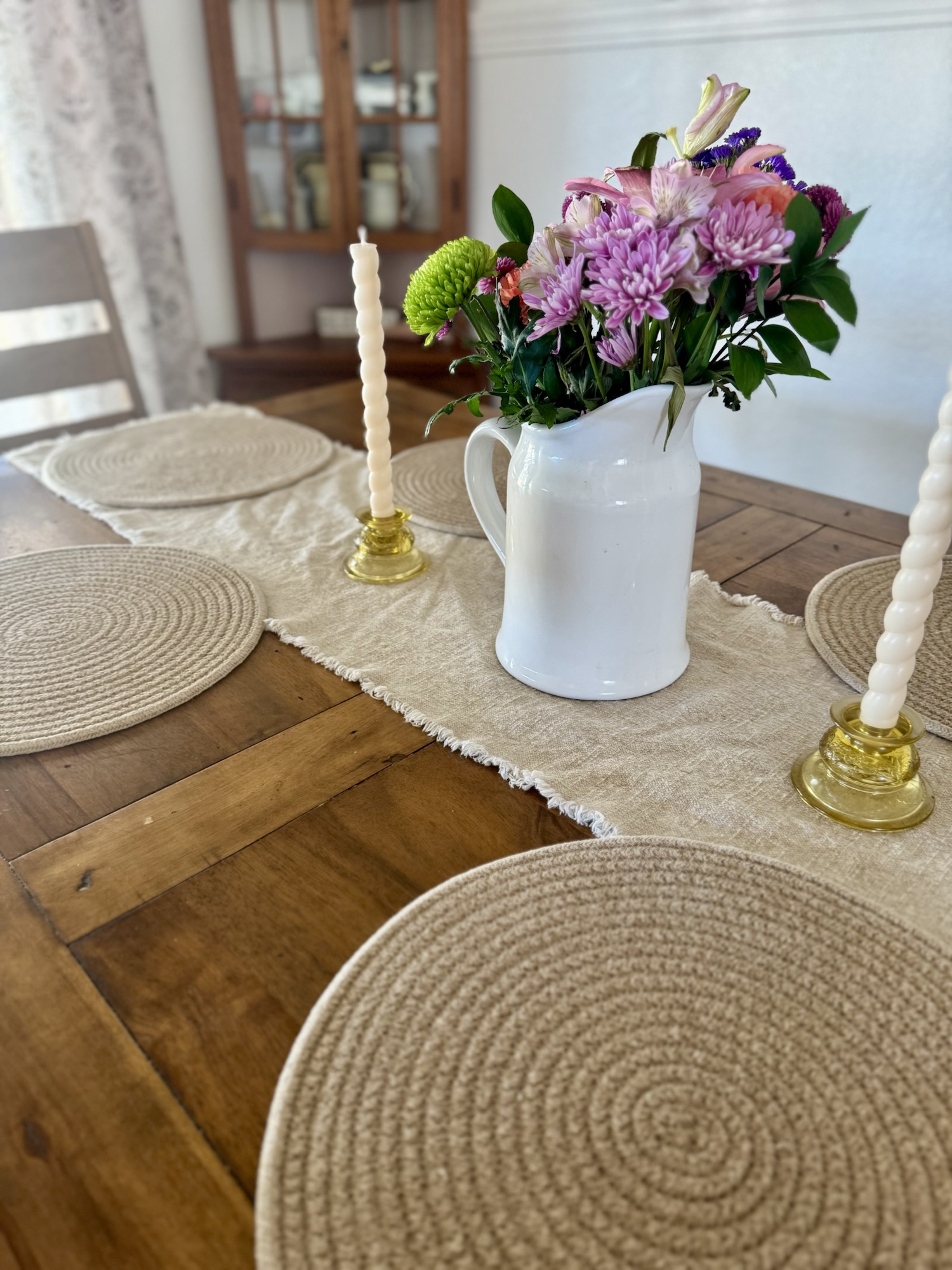 You can absolutely use artificial stems — and I will for longevity and budget — but there is something about a real floral centerpiece in the spring that shifts the entire mood of a room.